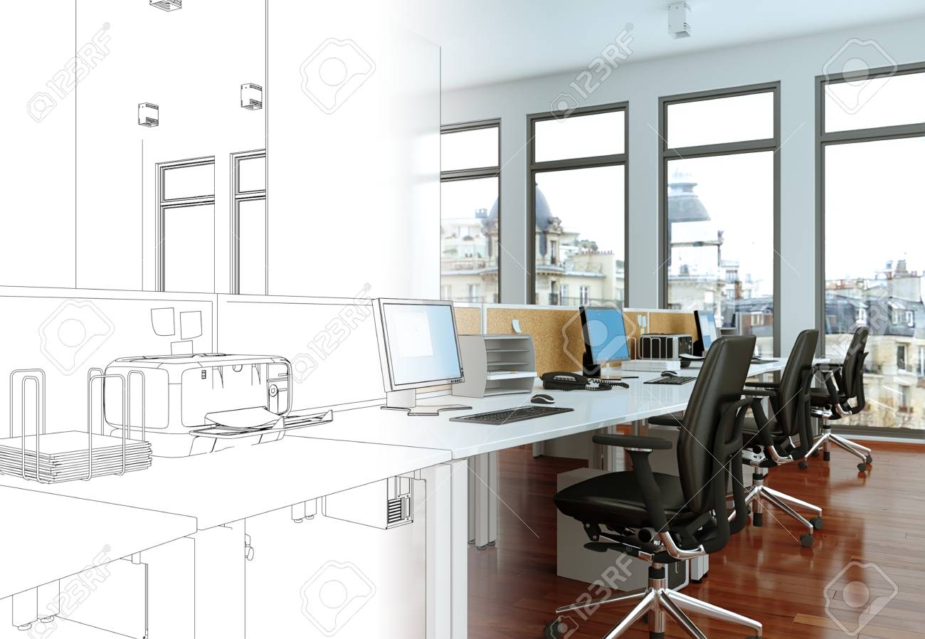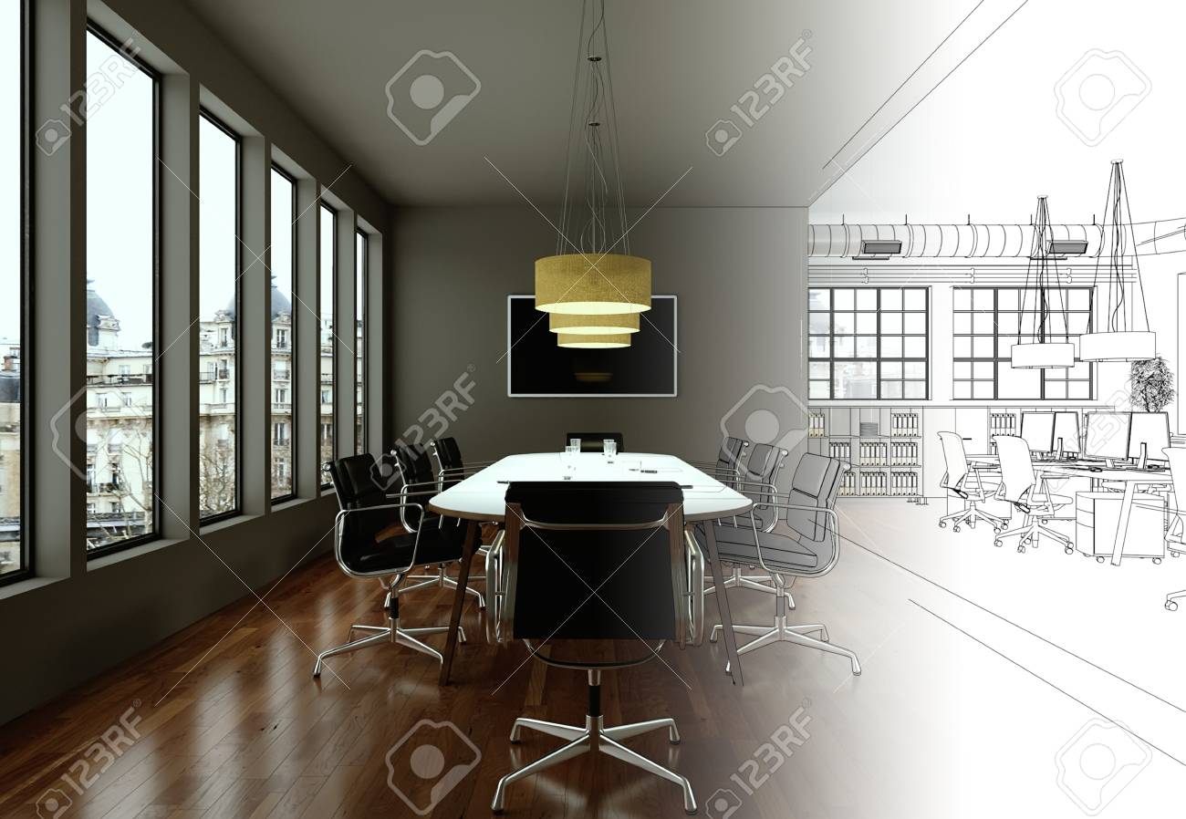 Interior Design Office Drawing Gradation Into Photograph 3d Illustration Stock Photo Picture And Royalty Free Image Image 101980585