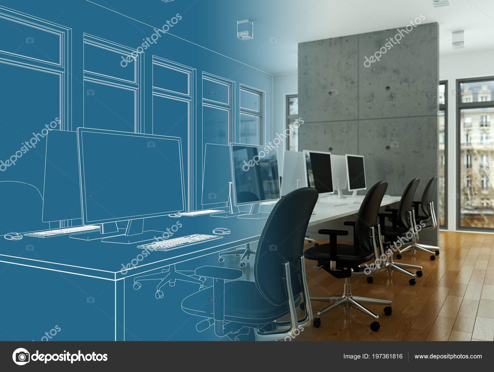 Interior Design Office Drawing Gradation Into Photograph Stock Illustration Illustration Of Office Industrial 117564598