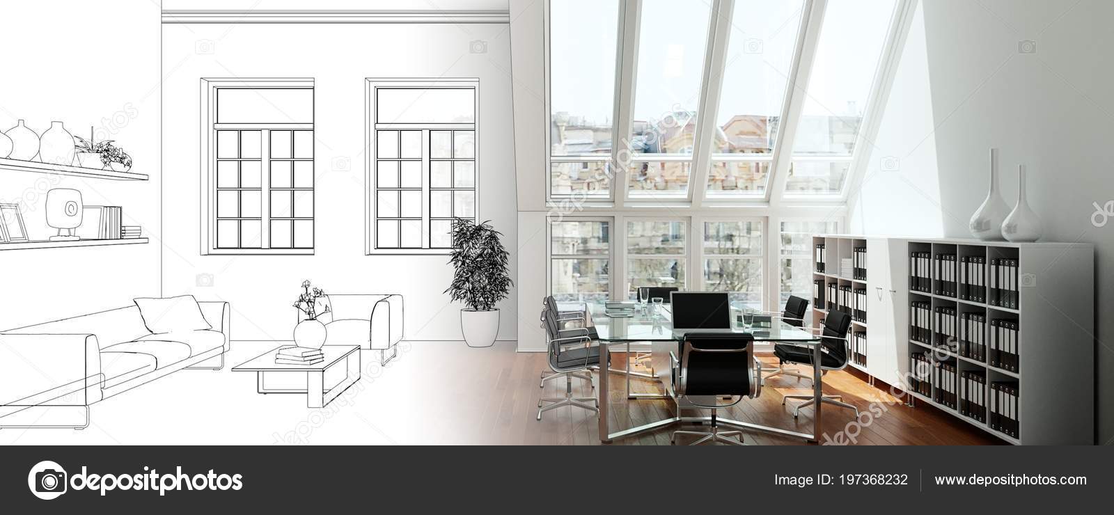 Interior Design Office Drawing Gradation Into Photograph 3d Illustration Canstock